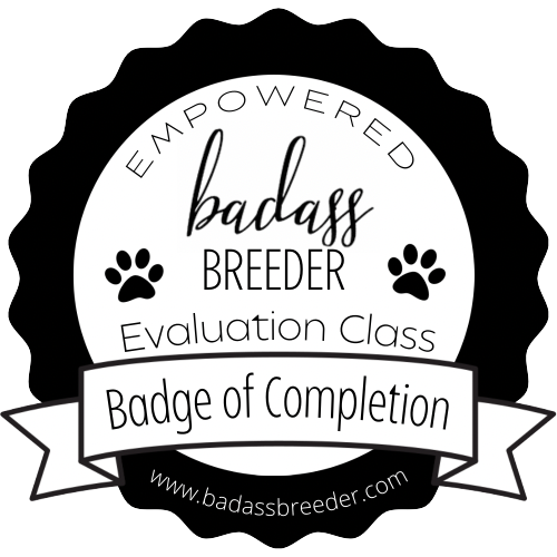 When puppies are approximately 53 days old, they undergo their temperament tests. We assess each puppy’s level of assertiveness, confidence, motivation, resilience, touch tolerance, energy level, sight and sound sensitivity, prey drive, signs of resource guarding, signs of separation anxiety, and focus ( human, dog, or environment). We video tape these evaluations and share the videos and written reports with those who have a puppy reserved from the litter. We then collaborate with our puppy families to determine which puppies will be the best fit for them.